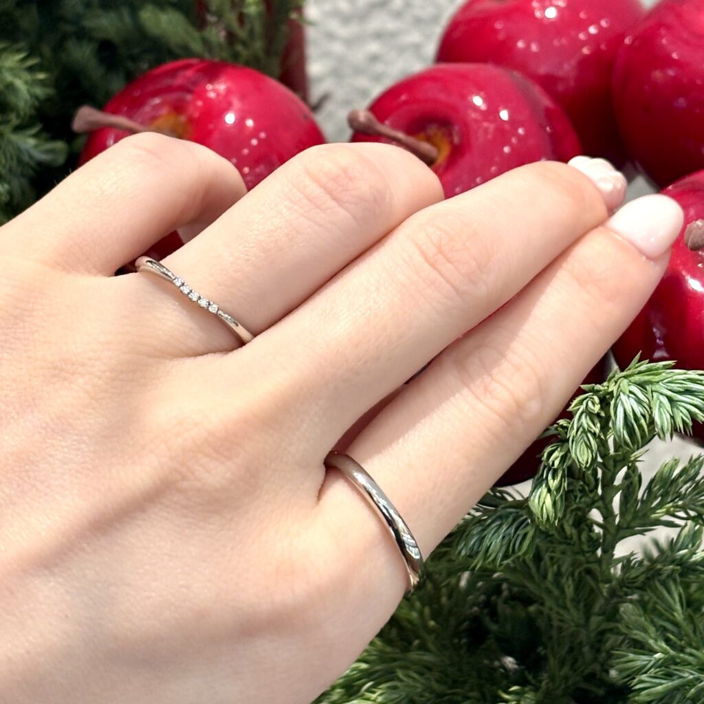 【lazarediamond】マリッジリング「ポピー」:感謝を誓う、優美なウェーブの輝き✨【安心堂静岡本店】
