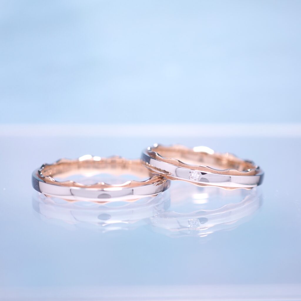 寄り添いあう想いを波模様で表現したリング
