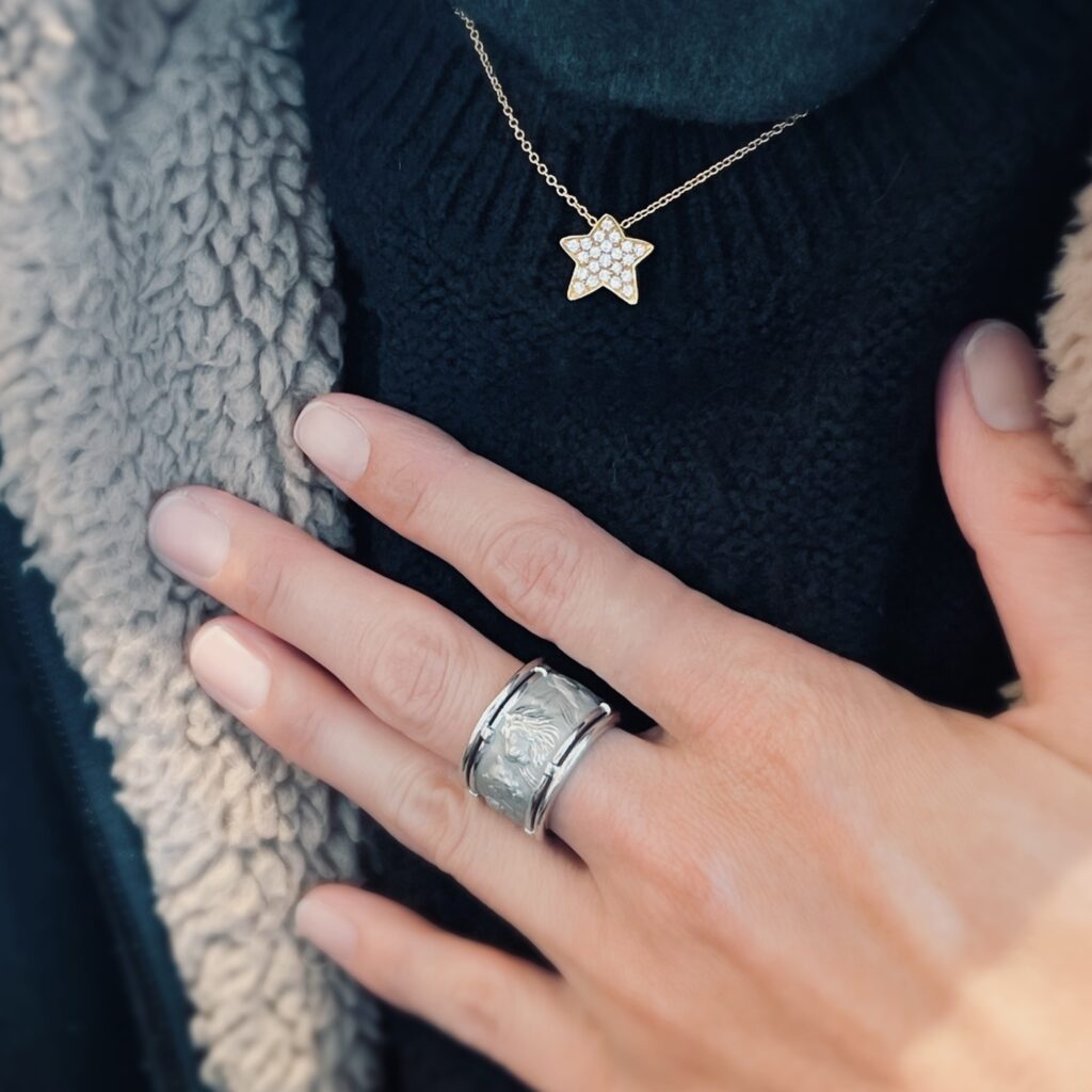 指に巻きつく独創的なデザインと