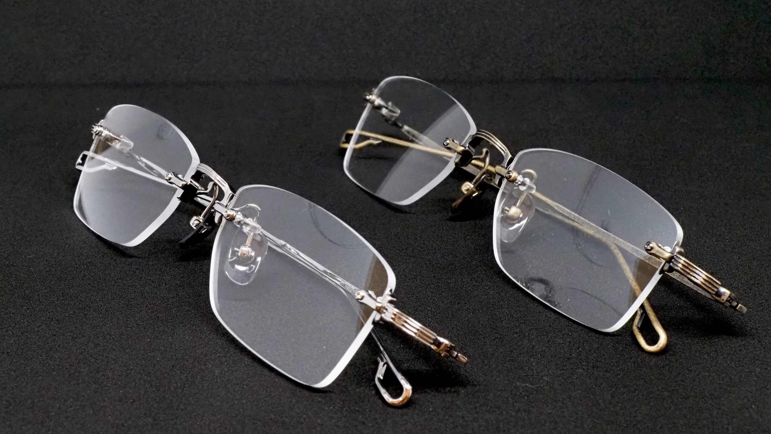 シンプルなスクエアシェイプのツーポイント(フチなし)フレームです。