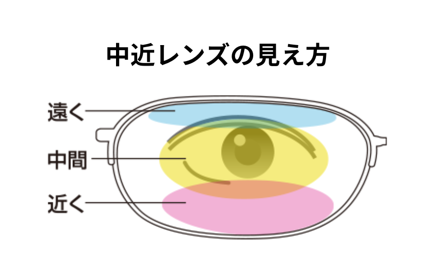 中近レンズは中間~手元距離の見える範囲が広いため、
