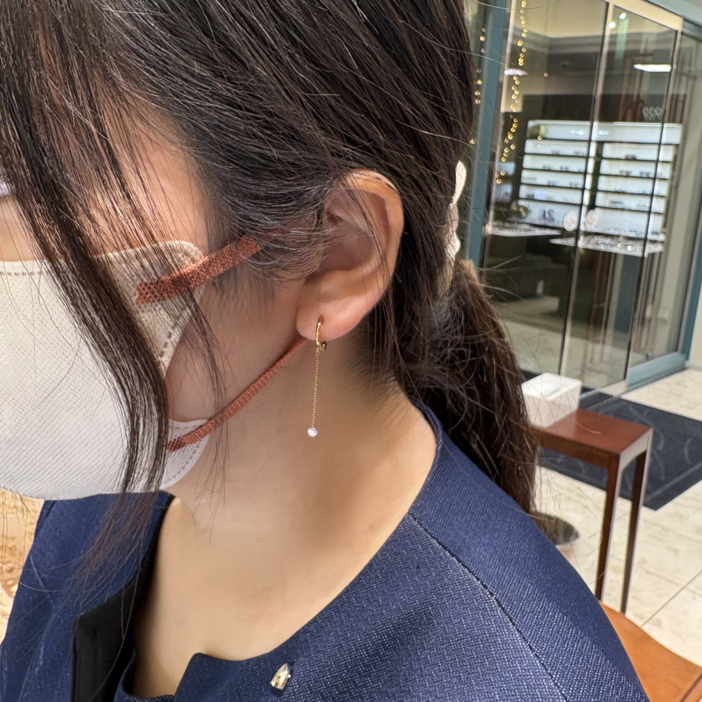 着けるとピアスの様に見える、フープタイプのイヤリングです。