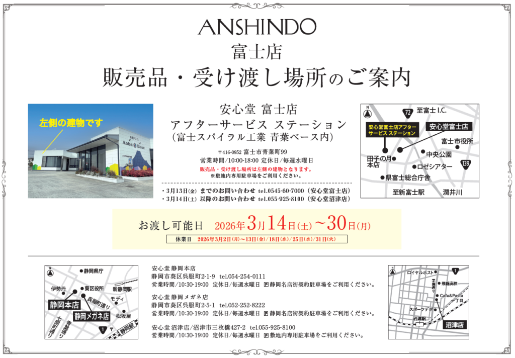 3/14以降 安心堂沼津店 TEL:055-925-8100