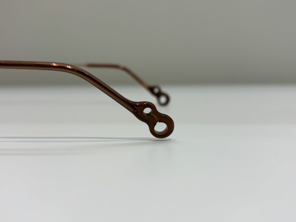 光の当たり方によって表情を変えるその質感はメタルフレームでありながらぬくもりを感じさせ、アセテートの艶やかな質感と掛け合わせることで全体のバランスが美しく引き立ちます。