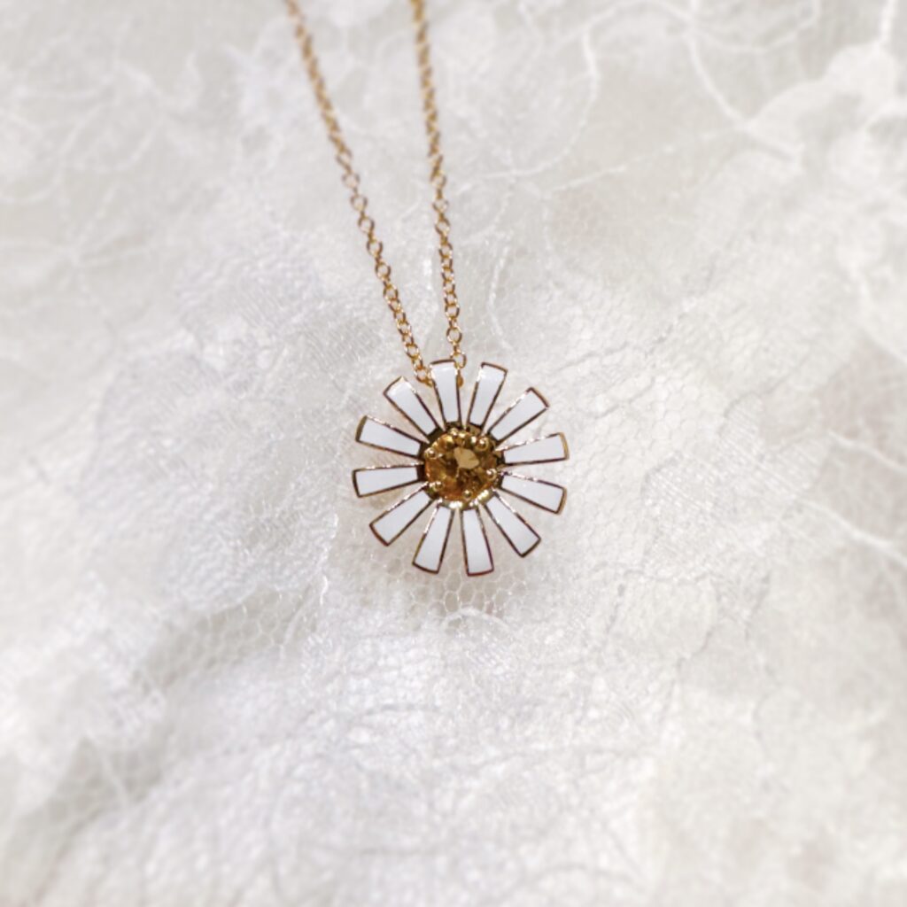 イエローゴールド×セラミックのコントラストに、中央のシトリンがきらっと輝くフラワーモチーフ✨