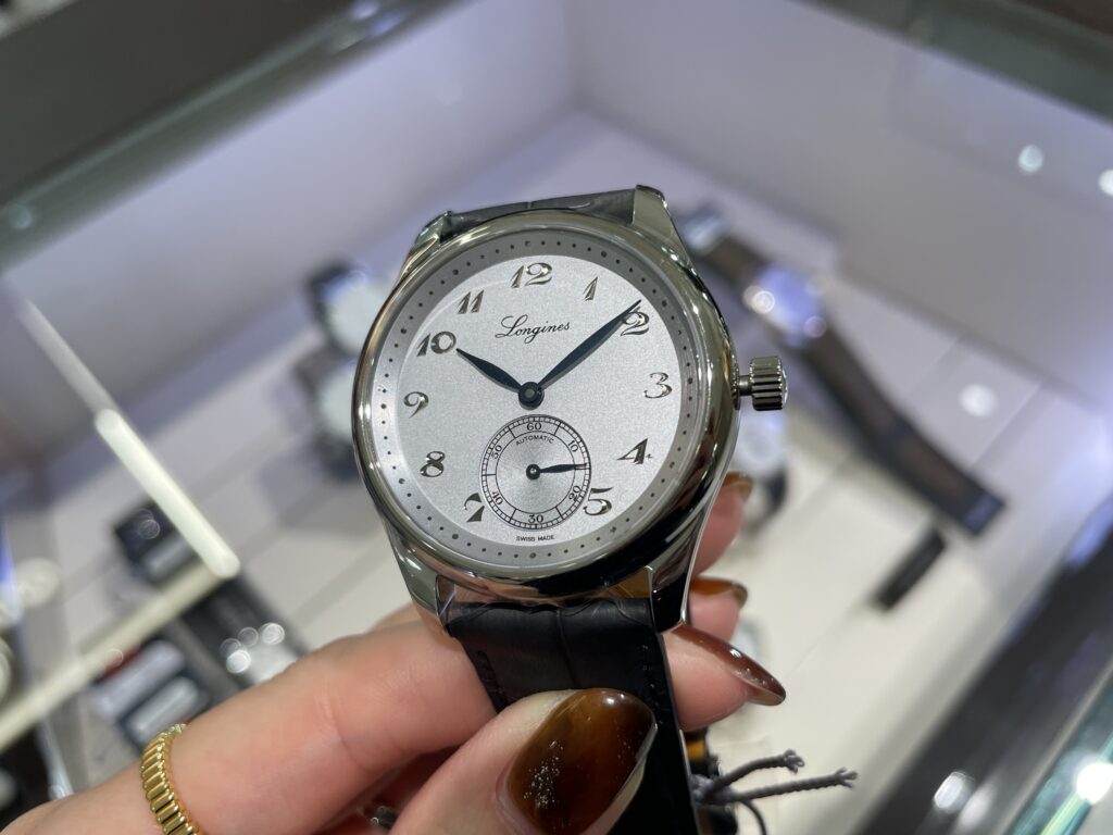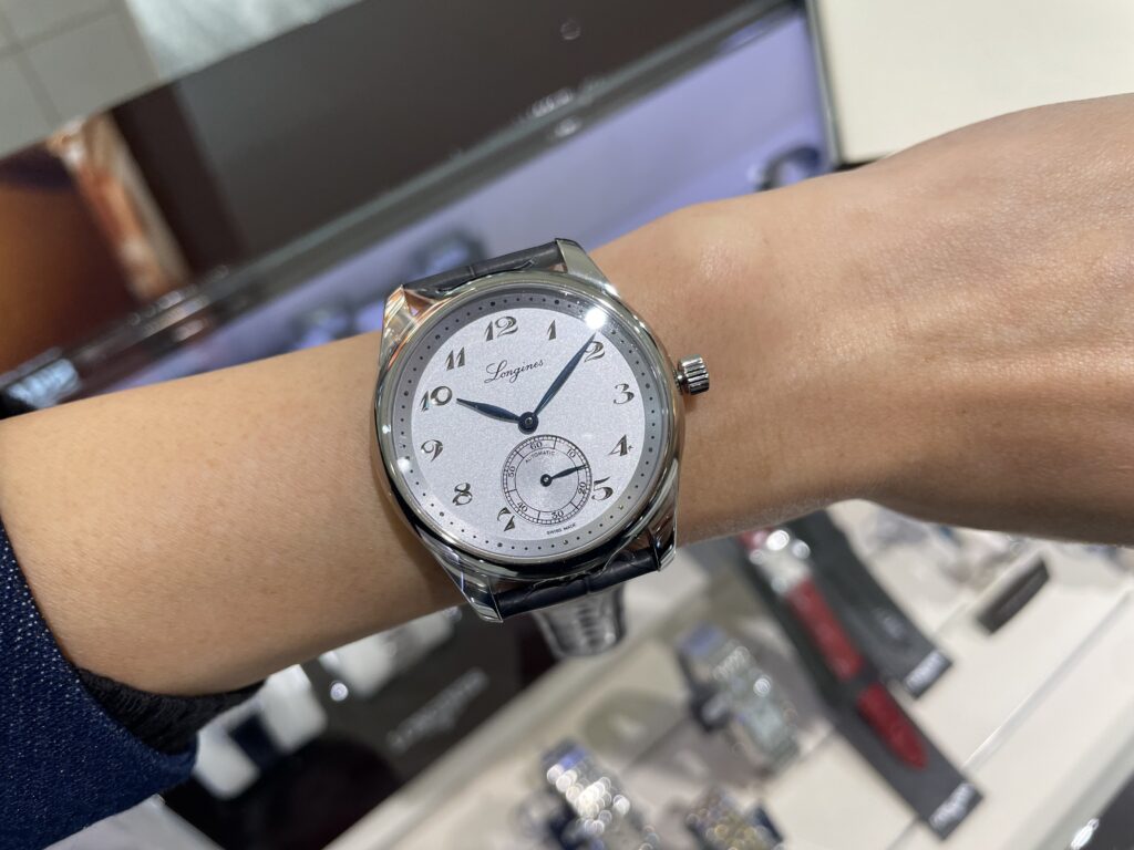 こちらは大人気のスモールセコンドがついた38.5mmの少し小ぶりなタイプ🙂↕️筆記体タイプのロゴ、奥行き感のある精巧なエングレービング加工のブレゲ数字など、「190周年モデル」の特徴的な文字盤を活かしながら、ステンレススティール製のケース径を40mmから38.5mmに、6時位置にスモールセコンドを配置。よりクラシックなスタイルに回帰したタイムピースですね🫶