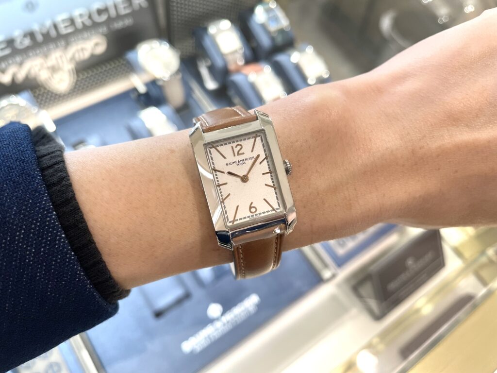 クラシックなレクタンギュラー女性用ウォッチのハンプトンリストウォッチは、ピュアシルバーカラーのダイヤルにゴールドの剣型の針をあしらい、6時と12時位置にはゴールドのアラビア数字が配され、エレガントな魅力を放っています🥹🫧カジュアルにもフォーマルにも使いやすい1本です!