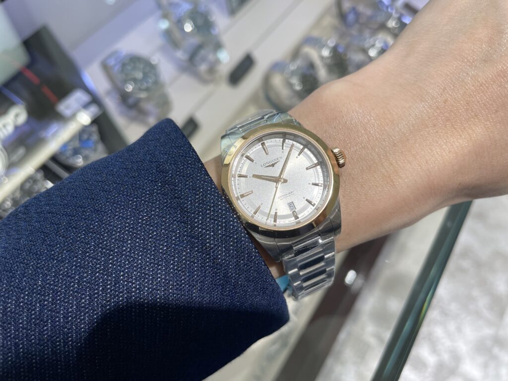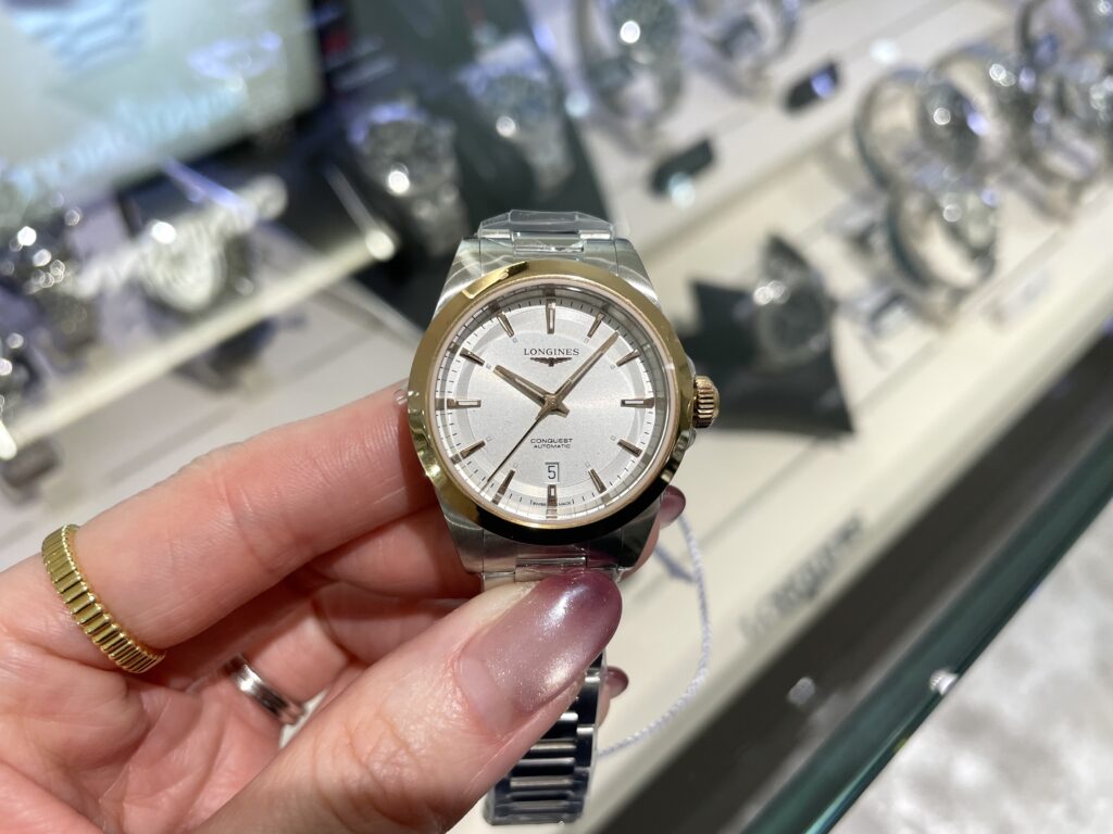 かわいい〜!!写真ではピンクゴールドが伝わりにくいですが肌馴染み良く、肌がパッと明るくなりますね🥹🥹プライベートはもちろん、お仕事でも時間を見るたびにテンションが上がる1本ですね。仕事が捗ってしまいそうです😌コンクエストはまだまだたくさんの種類をご用意しておりますので、ぜひ店頭でお気に入りを見つけてくださいね!皆様のご来店をお待ちしております🙋♀️💫