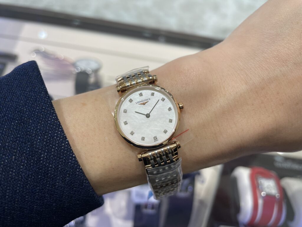 このローズゴールドのカラー、かわいいですよね🥹カラーはもちろん特徴なんですがこちらは何といっても時計が薄い!!本当に着用していても袖に引っかかったりすることが少なく感じます🙂↕️時計をつけていて厚みが気になる方にもおすすめですよ〜👍