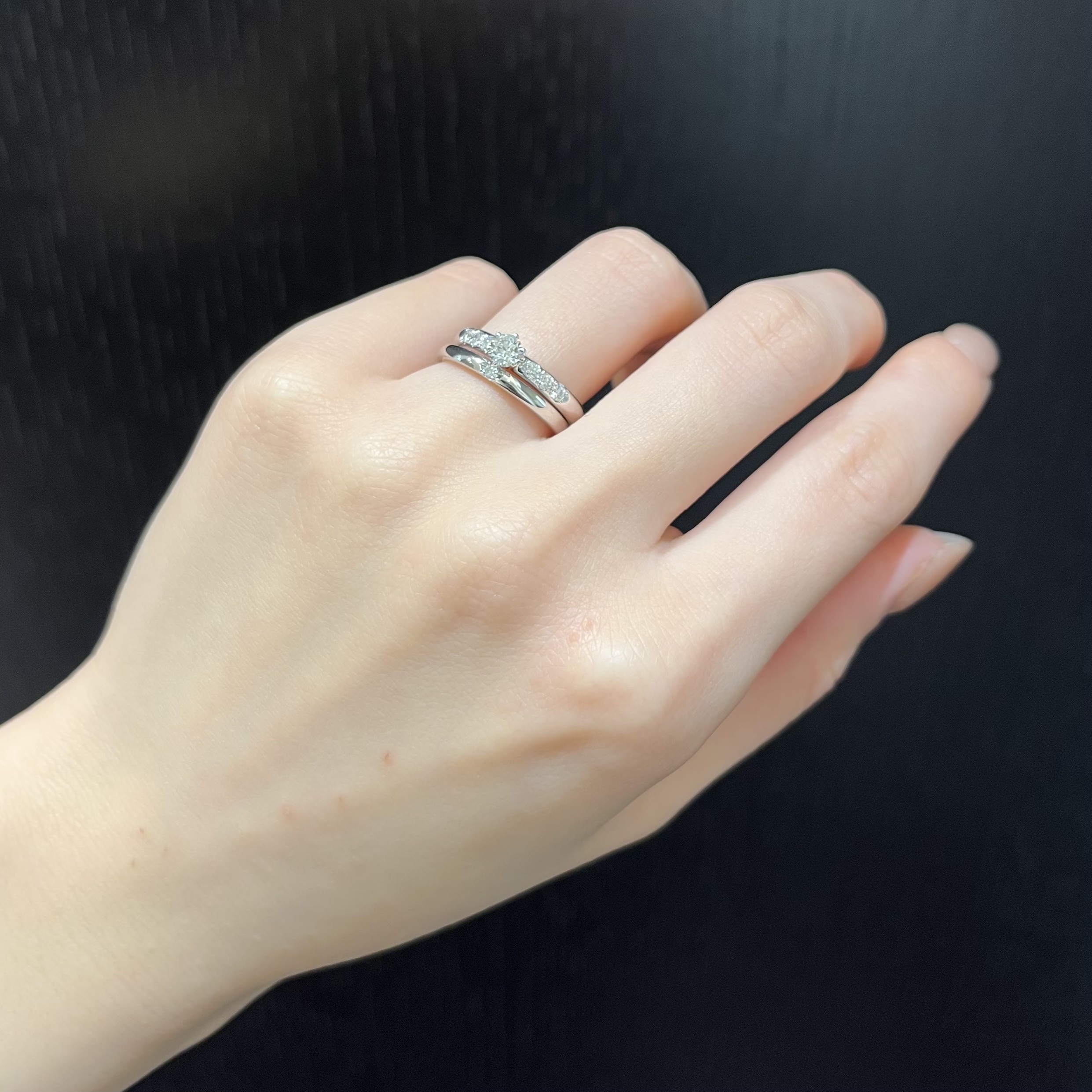 右…ダイヤたっぷりのリングもソリテールリングと合わせればバランス◎