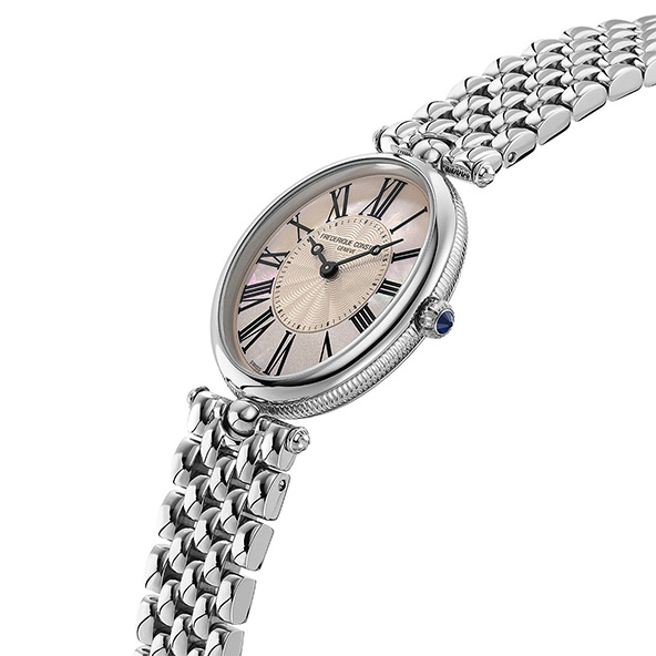 バンドは、クラシックな時計のデザインに合わせて7列バンドを採用。