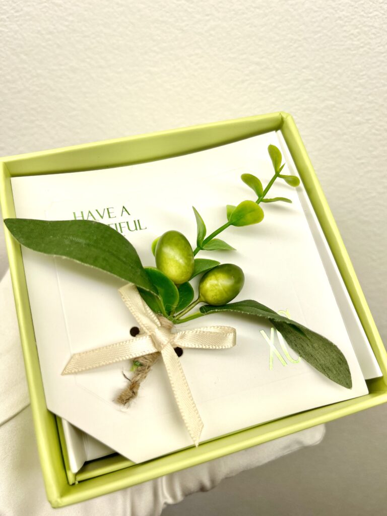 「安らぎ・平和・知恵」などの花言葉を持つオリーブをモチーフに、クリーンで鮮やかな白蝶貝の文字盤に、立体感のあるオリーブの葉と実が描かれています。