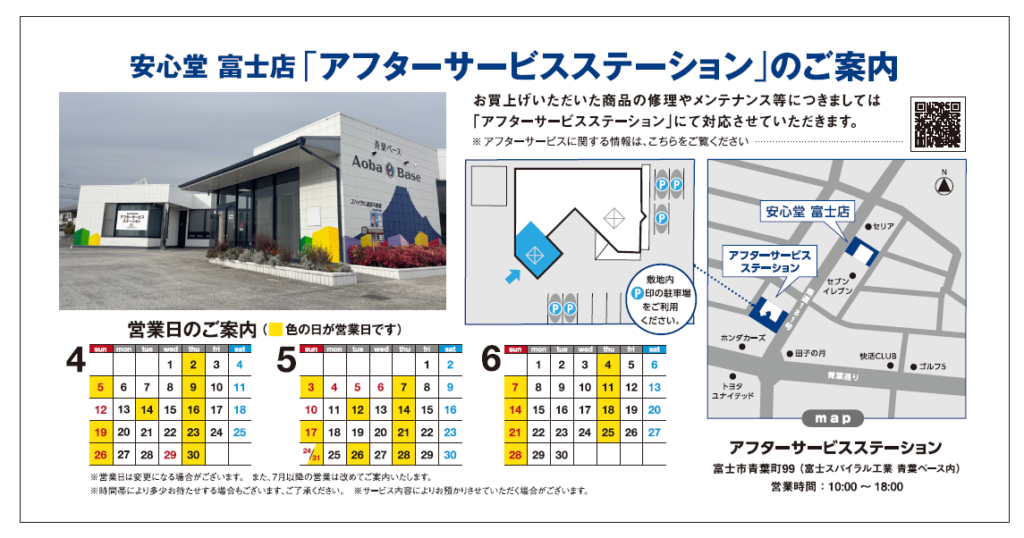 「安心堂富士店」閉店に伴うアフターサービスのご案内