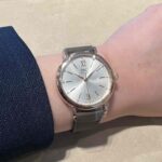 文字盤にはシルバーのサンブラッシュ仕上げが施されており、