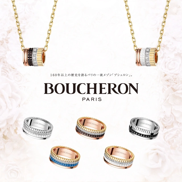 安心堂静岡本店では、4/29(水・祝)〜5/10(日)まで「ブシュロン キャンペーン 2026」を開催いたします。異なる4つのモチーフを組み合わせたアイコンジュエリーである「キャトル」。伝統的な彫刻模様と異素材のコントラストの表現で多くの人を魅了しています。ぜひこの機会にブシュロンの世界観をご体感ください。