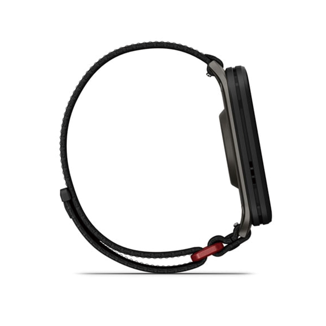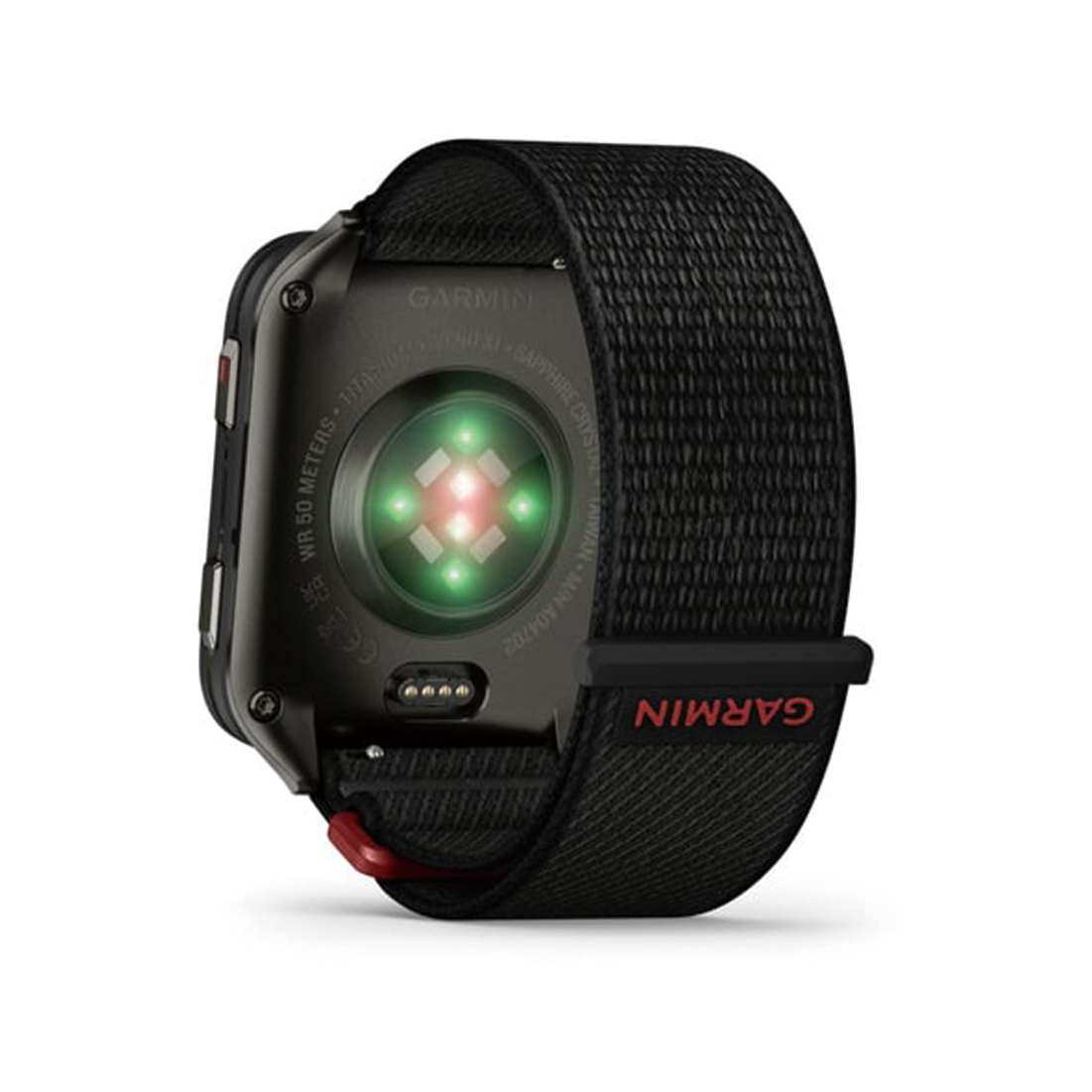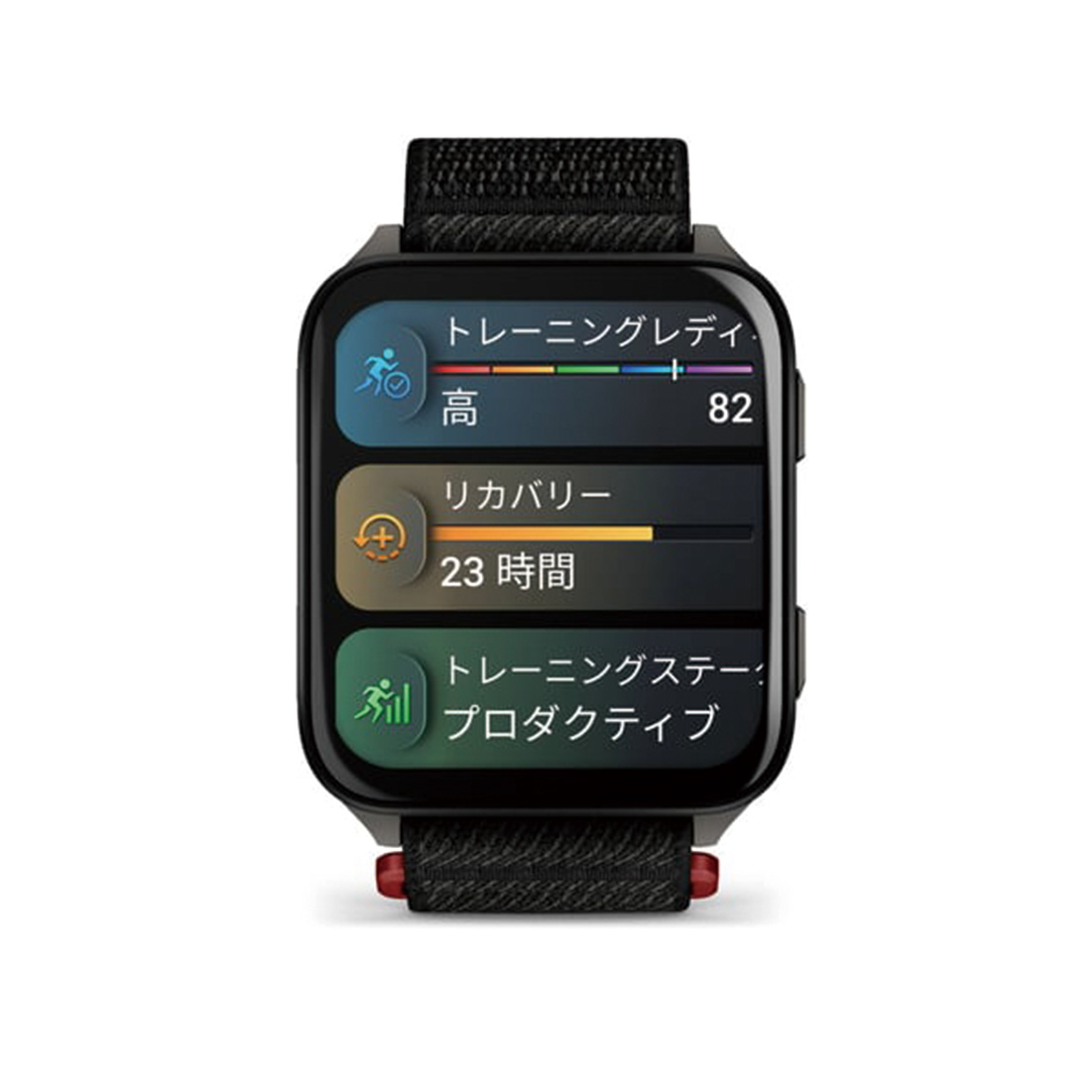 ストラップ素材:ナイロン / レンズ素材:サファイアクリスタル / ケース素材:FRP(チタンリアカバー) / サイズ:41×46×7.9mm / ディスプレイサイズ:対角2インチ(51.2mm)表示領域1,304平方mm / 稼働時間*スマートウォッチモード:約8日間(常時表示:約2日間) / 内蔵メモリ/履歴:32GB / 防水等級:5ATM |