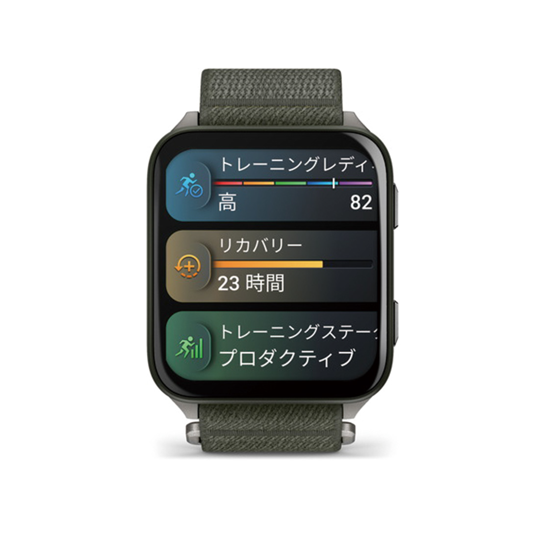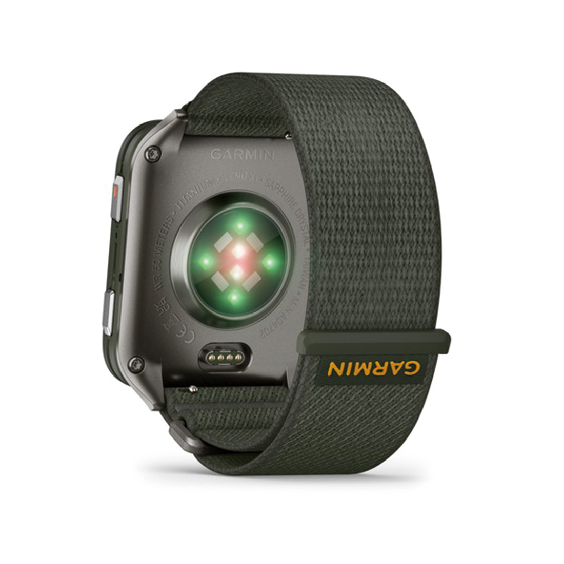 ストラップ素材:ナイロン / レンズ素材:サファイアクリスタル / ケース素材:FRP(チタンリアカバー) / サイズ:41×46×7.9mm / ディスプレイサイズ:対角2インチ(51.2mm)表示領域1,304平方mm / 稼働時間*スマートウォッチモード:約8日間(常時表示:約2日間) / 内蔵メモリ/履歴:32GB / 防水等級:5ATM |