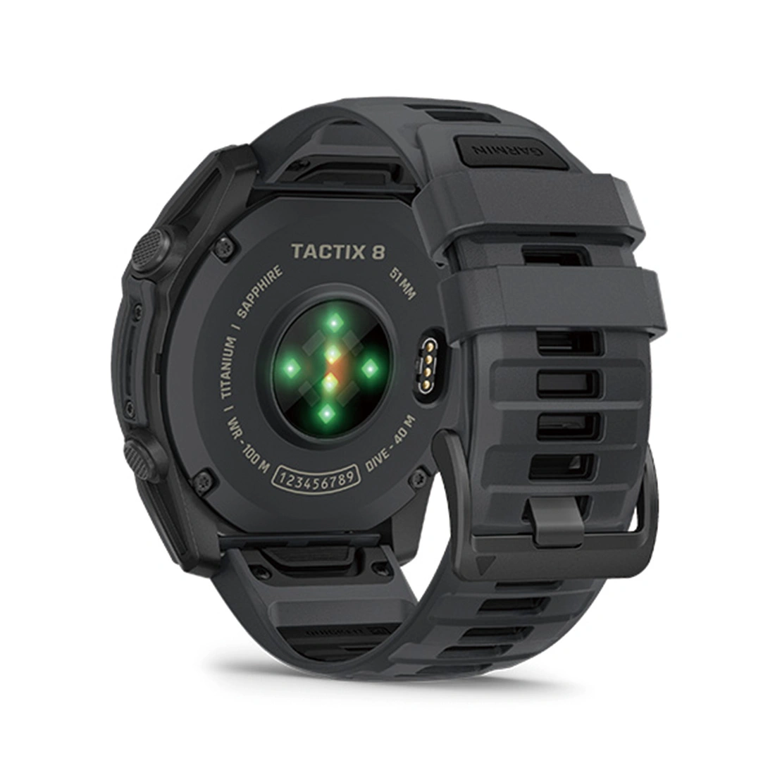 ストラップ素材:シリコン / レンズ素材:サファイアクリスタル / ベゼル素材:Cerakoteコーティングチタン / ケース素材:繊維強化ポリマー(チタンリアカバー) / サイズ:51×51×14.7mm / ディスプレイサイズ:直径1.4インチ(35.56mm) / 稼働時間*スマートウォッチモード:約29日間 / 内蔵メモリ / 履歴:32GB / 防水等級:10ATM |